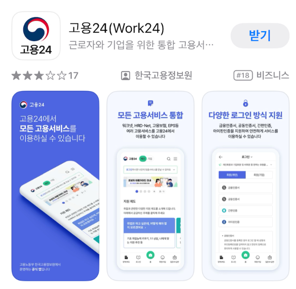 - 고용24 모바일(m.work24.go.kr) 접속 후 공동인증서 또는 간편인증 로그인