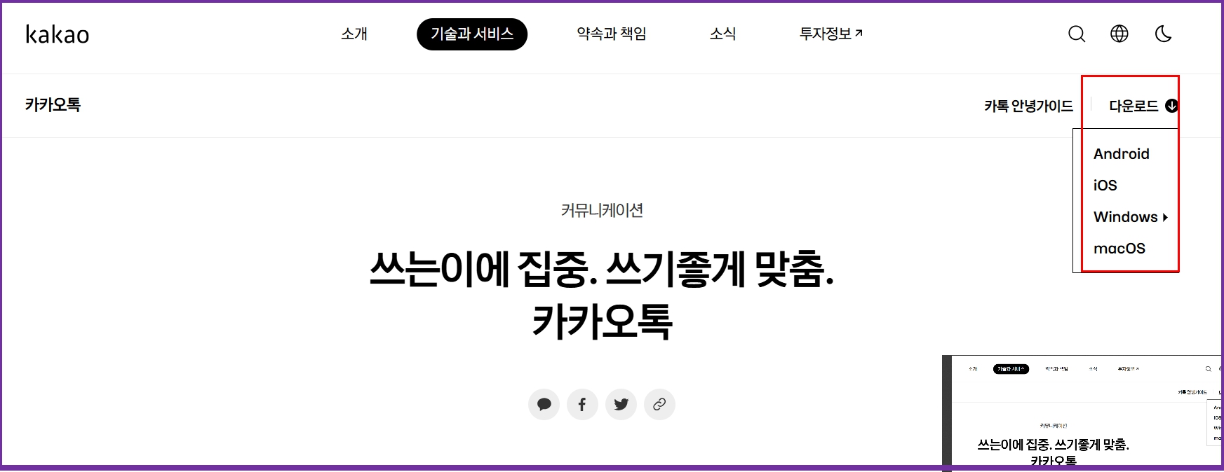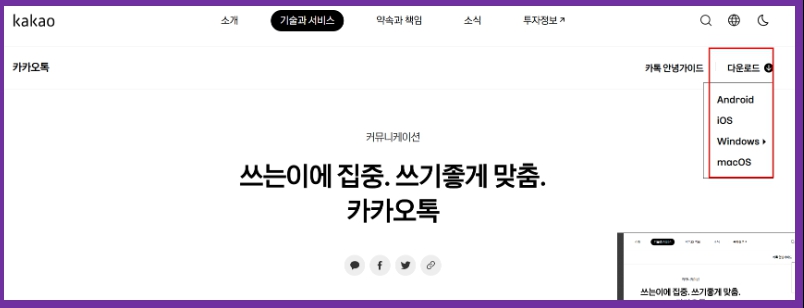 ✔ 다운로드 상세 설명 참고 → https://www.kakaocorp.com/service/KakaoTalk