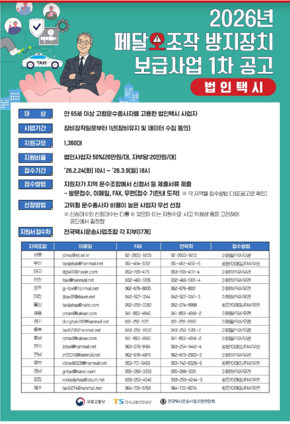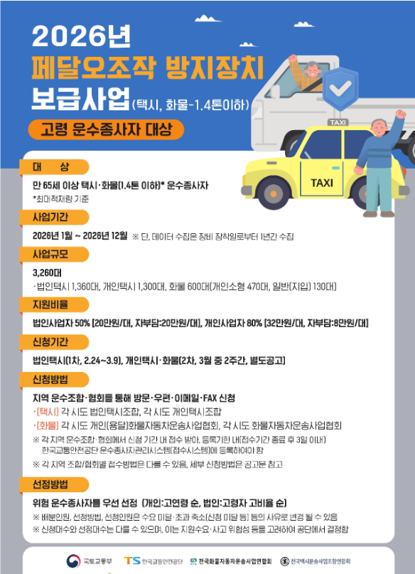 이번 페달 오조작 방지장치 보급 사업은 사고 위험이 높은 고령 운수종사자를 우선으로 합니다.