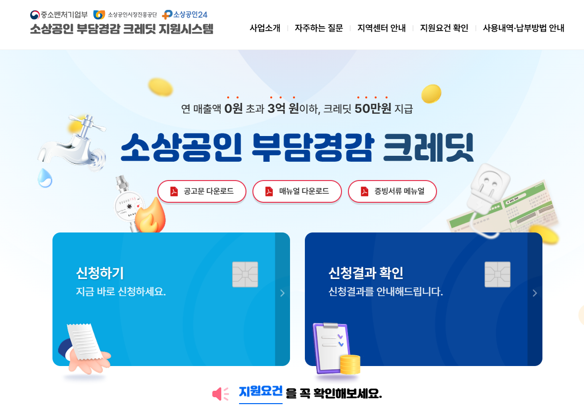 신청 웹사이트: 소상공인 부담경감 크레딧 지원시스템 (credit.sbiz24.kr) 에서 진행됩니다.