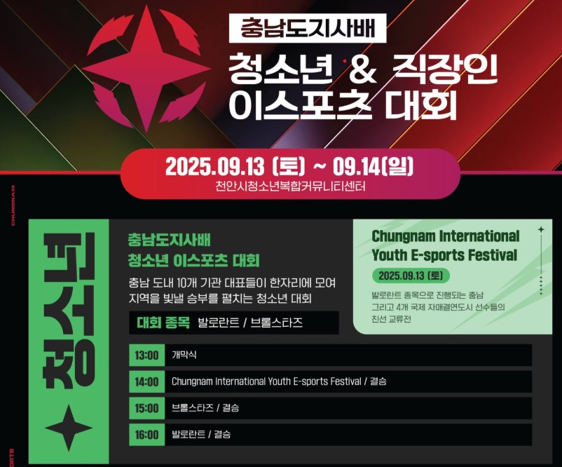 - 천안시청소년복합커뮤니티센터 공지 — 2025 천안시 청소년 E-스포츠 대회 예선(발로란트/브롤스타즈) (브롤 9/6, 본선 9/13 필수 문구 포함)