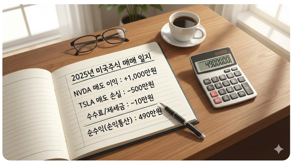 상황: A씨는 2025년 한 해 동안 엔비디아(NVDA)로 큰 수익을 냈지만, 테슬라(TSLA)에서는 손실을 보고 매도했습니다.