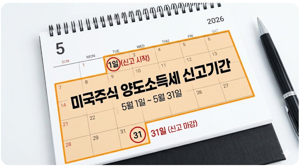 많은 분이 놓치기 쉬운 것이 바로 미국주식 세금신고 기간입니다. 2025년 1월 1일부터 12월 31일까지 발생한 미국주식 매도후 세금은 2026년 5월 1일부터 5월 31일 사이에 주소지 관할 세무서 또는 국세청 홈택스를 통해 확정신고 및 납부를 완료해야 합니다.