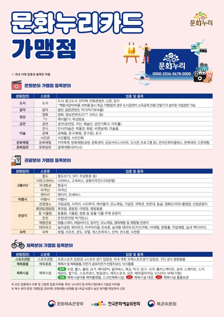- 문화 분야: 영화관(CGV, 롯데시네마), 공연장, 서점, 박물관, 미술관, 사진관 등